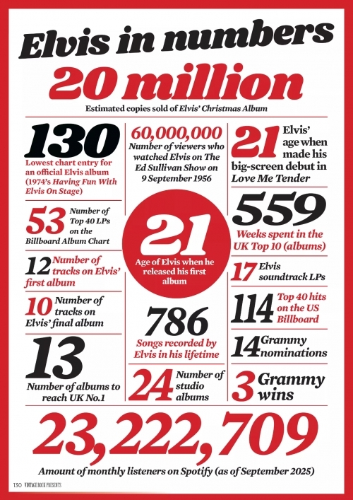 |  Een van de meest indrukwekkende pagina’s uit de nieuwe Vintage Rock Presents, Elvis at 90 special is zonder twijfel de sectie “Elvis in Numbers”, waarin de ongeëvenaarde impact van Elvis Presley in cijfers wordt samengevat.
